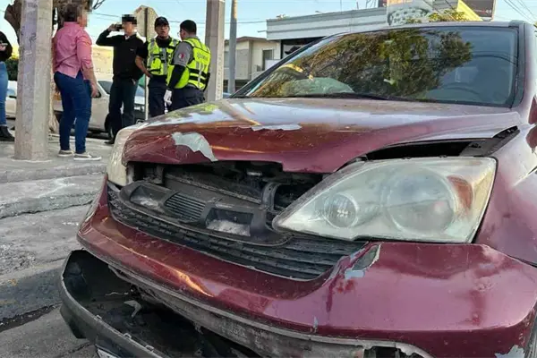El hecho se registró alrededor de las 16:00 horas de este lunes, en el cruce de las calles Aquiles Serdán y Antonio Rosales de la colonia Scally, entre una vagoneta Honda, línea CR-V, color tinto, con placas VRK-664-B del estado de Sinaloa y un vehículo sedán de la marca Honda, línea Accord, color gris, con placas VGX-941-B de Sinaloa.