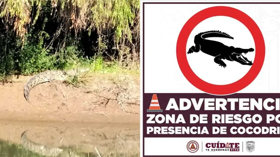 Debido a un reporte de avistamiento de un cocodrilo cerca de la Uva, Protección Civil instalará pendones de alerta y exhorta a la población a no meterse a bañar en esta zona del Río Sinaloa y a extremar las precauciones, pues tampoco es seguro acampar.