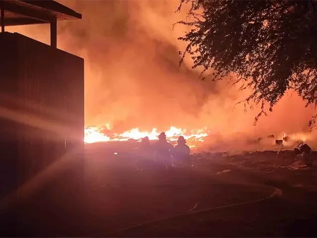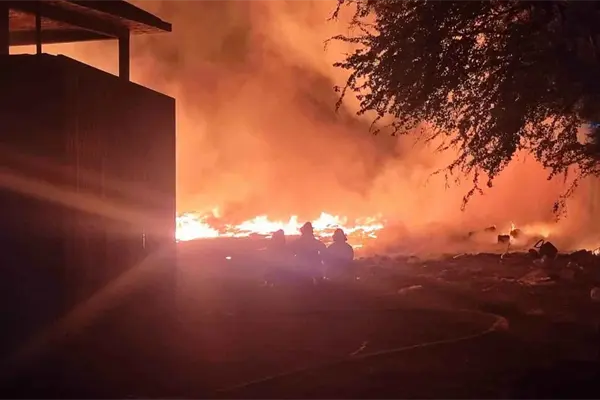 El siniestro ocurrió en un predio donde almacenaban plástico.