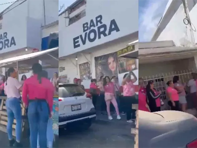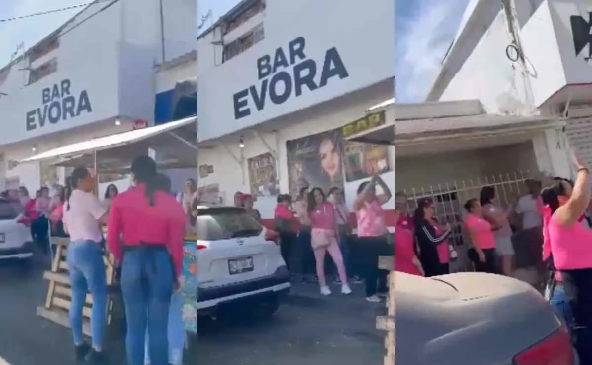 Afuera del bar El Guayabo hay largas filas de mujeres vestidas de rosa para recibir cerveza gratis