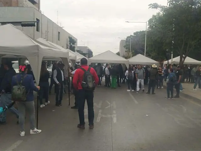 También trabajadores de la universidad llegaron para instalar desde temprana hora varias carpas así como equipo de sonido para la manifestación.