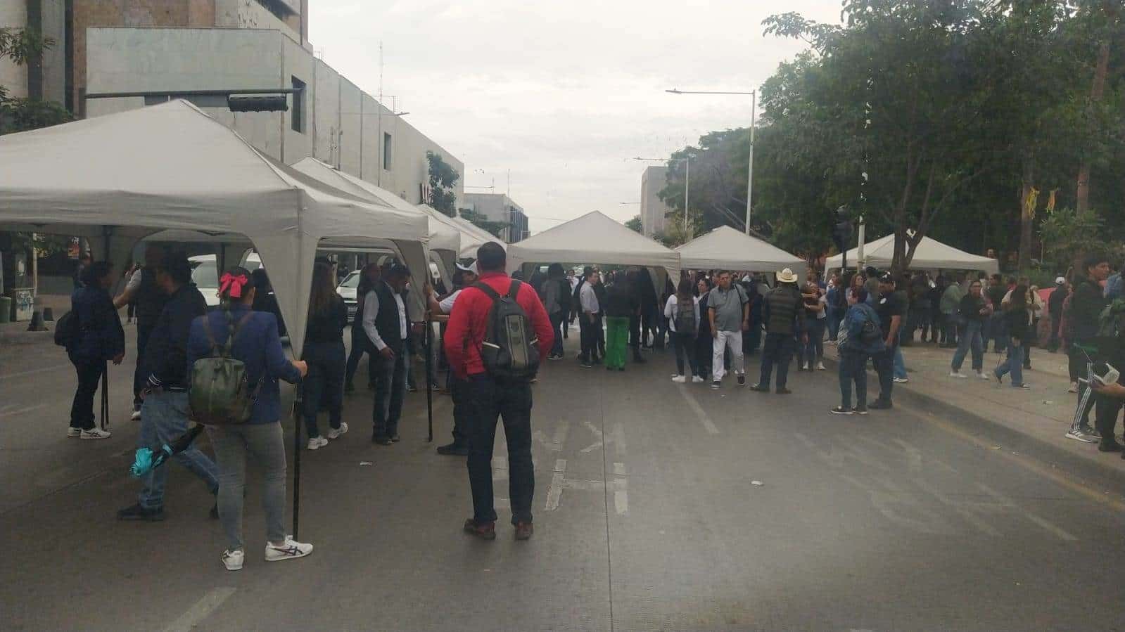 Trabajadores y alumnos de la Universidad Autónoma de Sinaloa (UAS), bloquearon con carpas tres carriles de circulación de la avenida Álvaro Obregón frente a catedral.