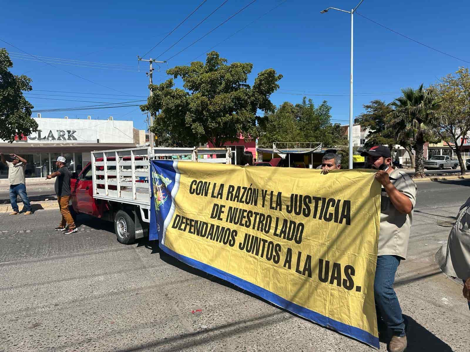 Decenas de trabajadores y alumnos de la Universidad Autónoma de Sinaloa (UAS), bloquearon la circulación vial de los bulevares Justicia Social, Antonio Rosales y Manuel J. Clouthier, a un costado de las instalaciones educativas en exigencia de alto total a la persecución política y la defensa de la autonomía universitaria.