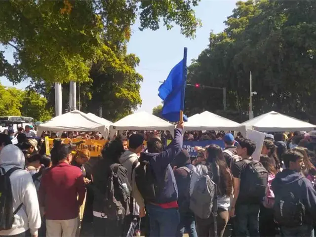 Estudiantes y trabajadores de la Universidad Autónoma de Sinaloa (UAS) bloquearon la avenida Insurgentes durante una manifestación frente a Palacio de Gobierno.