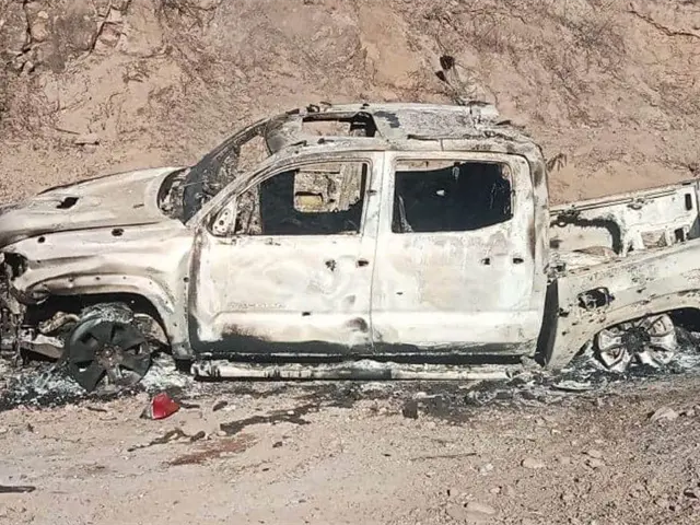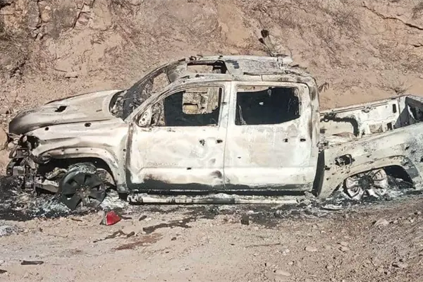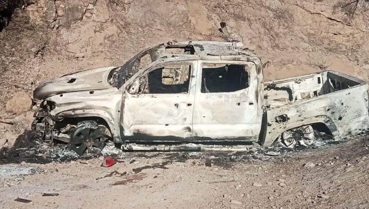Cerca de los cuerpos se encontró una camioneta calcinada y con impactos de bala.