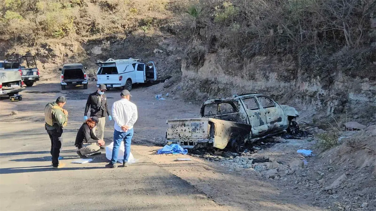 Durante el enfrentamiento quedaron en el lugar dos camionetas destrozadas a balazos y los cuerpos de las tres personas. Además de equipo táctico y varios casquillos percutidos.