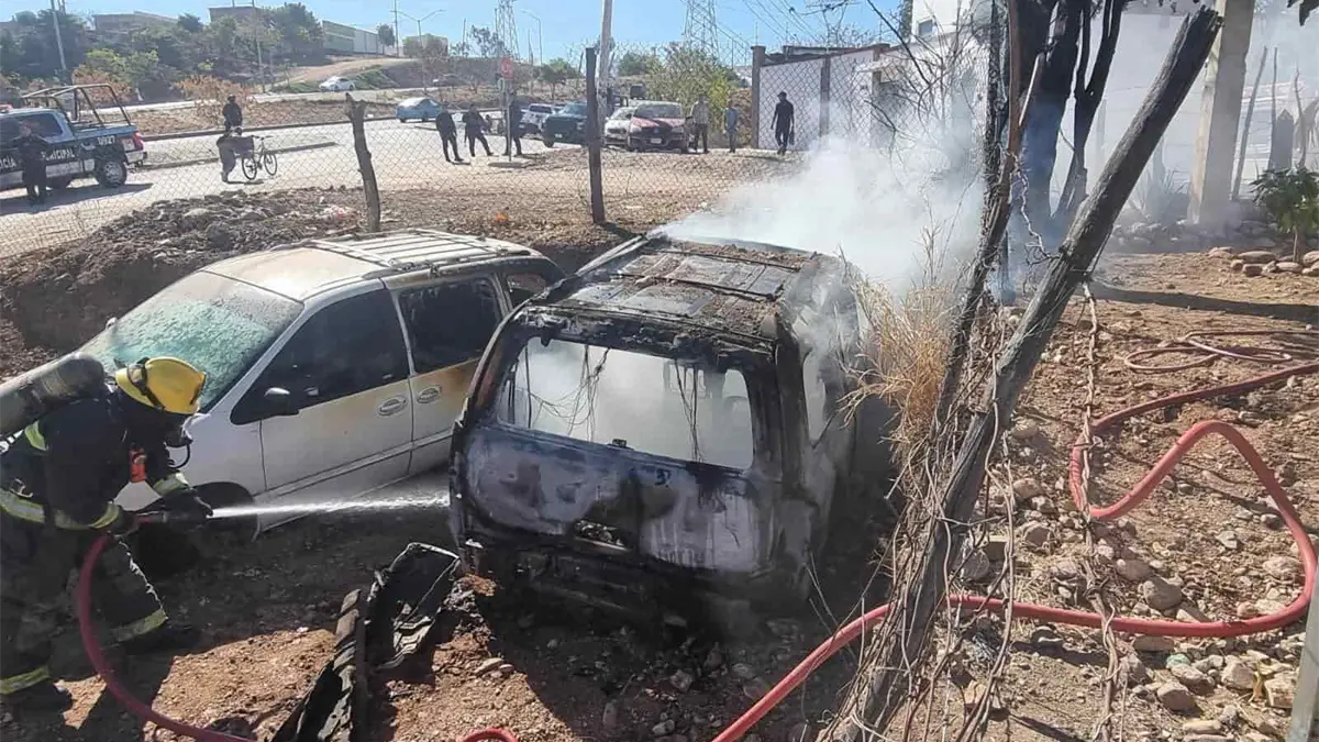 Una camioneta que estaba yunqueada se incendió durante la mañana de este miércoles en la colonia Nuevo México. Los bomberos de Culiacán acudieron al lugar para sofocar el incendio que se había generado.