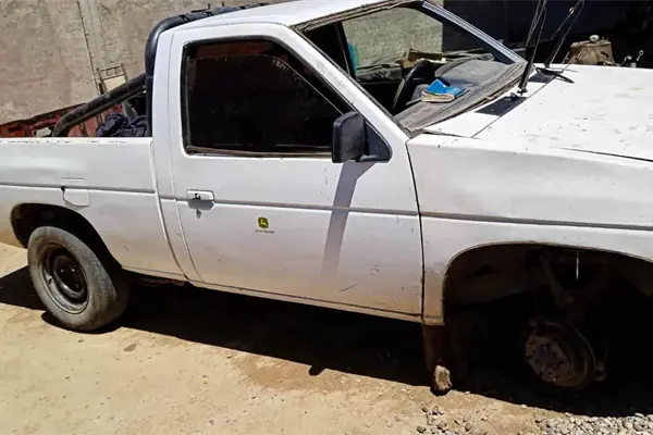 El tercer vehículo recuperado es una camioneta Nissan Datsun pick-up, blanca, modelo 1993, la cual cuenta con reporte de robo el 19 de marzo de 2024, y también fue localiza en el fraccionamiento Terranova.