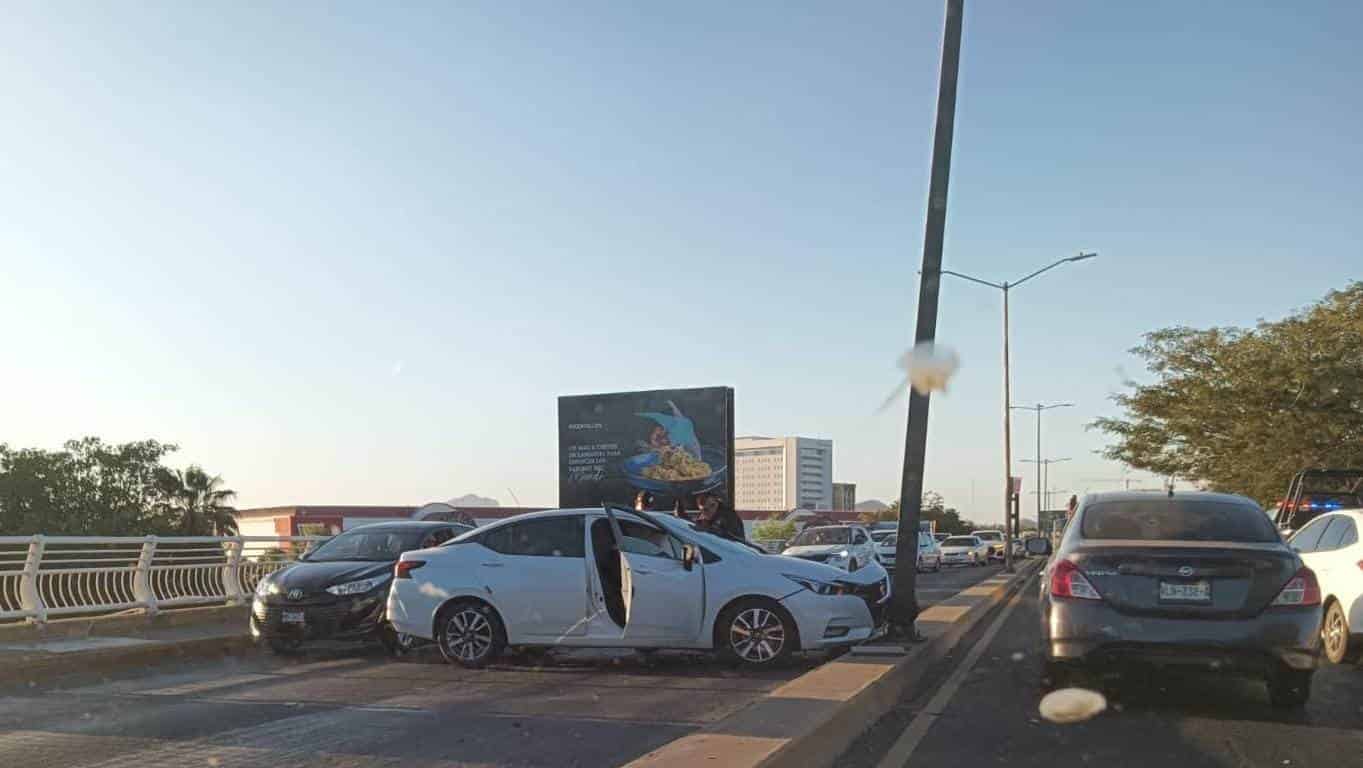 Un fuerte accidente se registró sobre el puente Teófilo Noris, en Culiacán, en el que un vehículo quedó atravesado en uno de los carriles