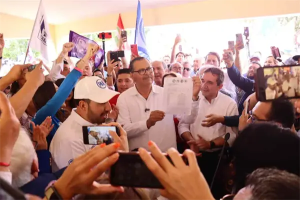 José Domingo Vázquez Márquez se registró de manera oficial ante el Consejo Municipal Electoral como candidato del PAN, PRI, PRD y PAS a la Presidencia Municipal de Ahome, acompañado de Marko Cortés, presidente de Acción Nacional en el país.