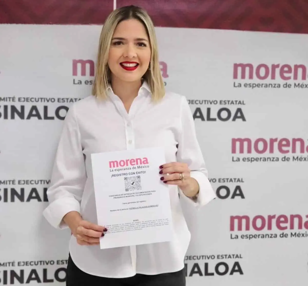 Estrella Palacios Domínguez presentó este jueves su registro como candidata común del Partido Morena y el Partido Verde a la Presidencia Municipal de Mazatlán.