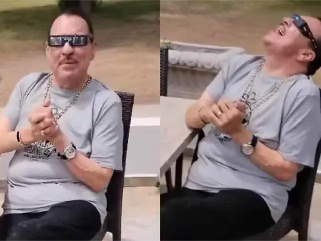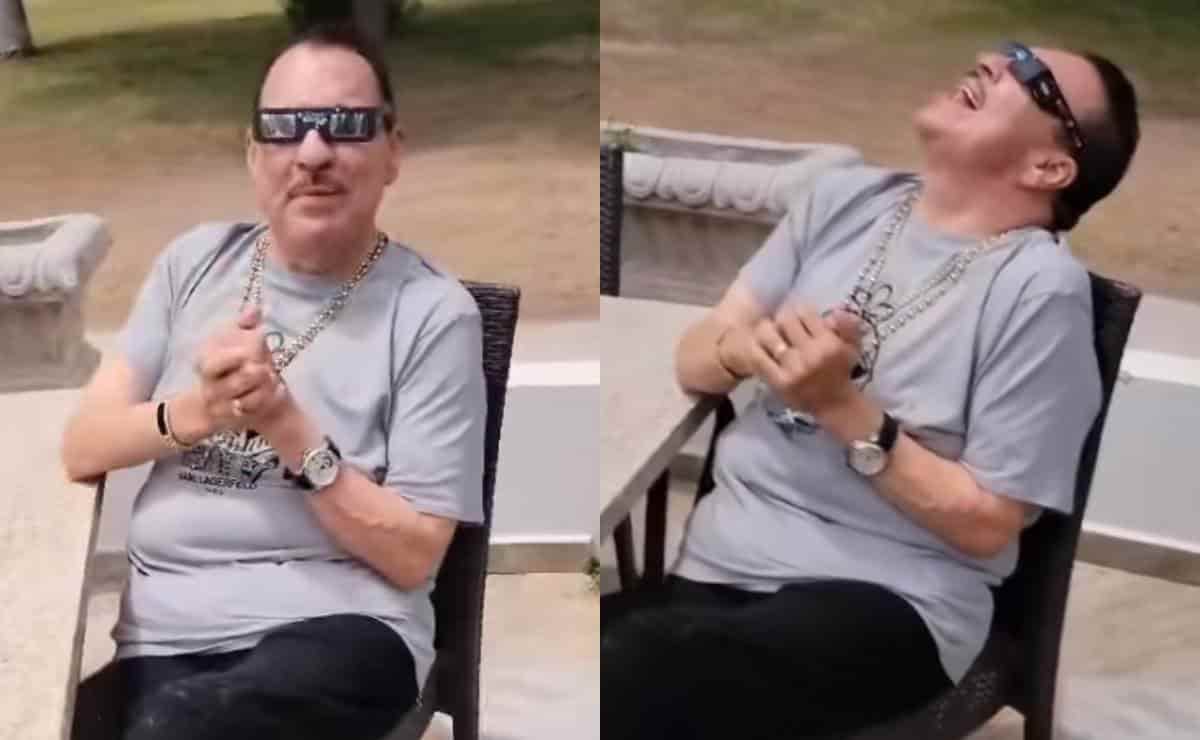 Vestido casualmente con camisa gris y pantalón negro, Julio Preciado se ve sentado con sus lentes especiales para ver el eclipse protegiendo sus ojos, revelando que está desde el patio de su casa siendo testigo de este acontecimiento.