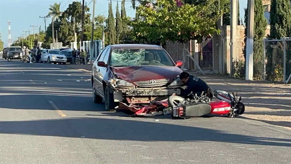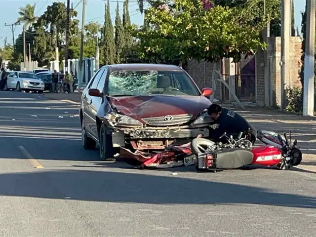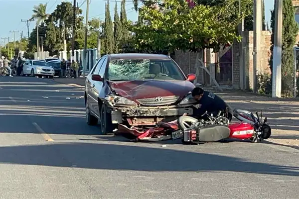 Las unidades que protagonizaron el hecho de tránsito fueron un vehículo de la marca Toyota, línea Camry, de color tinto, modelo 2004 y placas de Sinaloa, y una motocicleta de la marca Italika, color rojo con blanco y modelo 2024 en la que viajaban las víctimas.