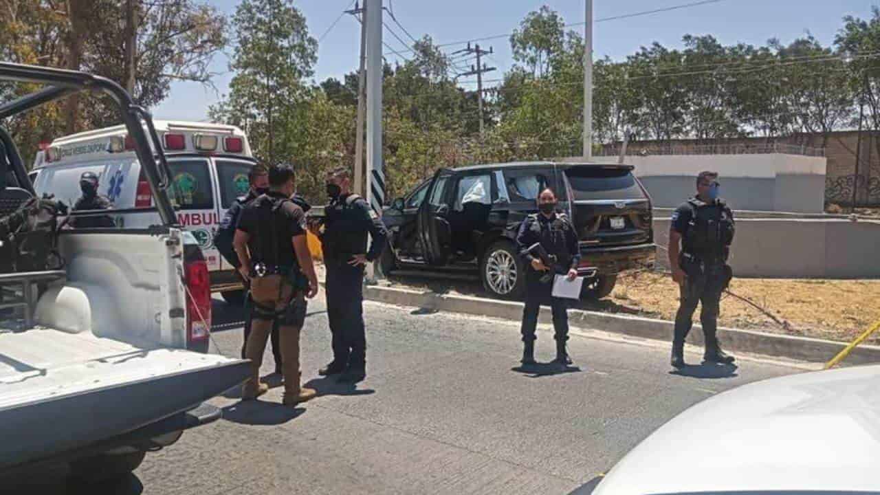 Al llegar al lugar, encontraron la Escalade de Irving impactada contra un muro de contención en Periférico y 5 de mayo, por la zona de Puertas las Lomas.