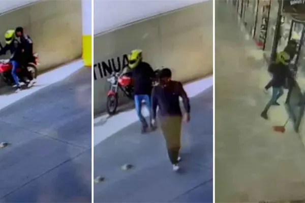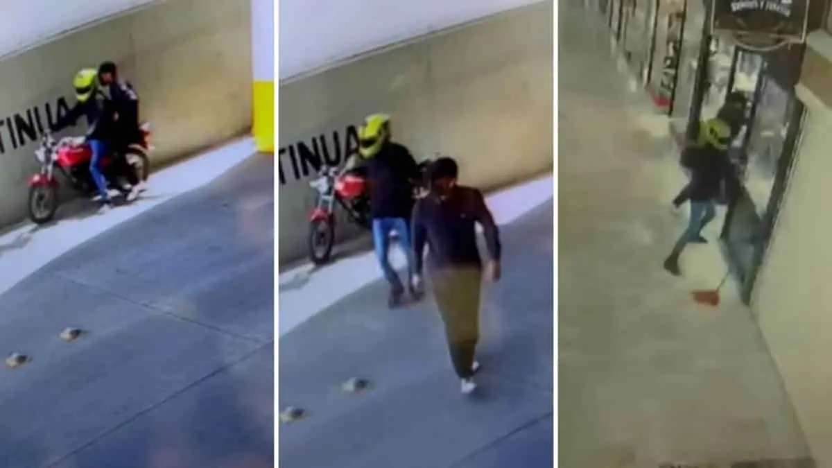En este video, el cual ya ha sido compartido en las redes sociales oficiales de Luz Noticias, se muestra como el robo fue efectuado por dos personas, quienes llegan a la mencionada plaza comercial en una motocicleta Italika color rojo, de la cual descienden lo que parece ser un hombre mayor y un joven.