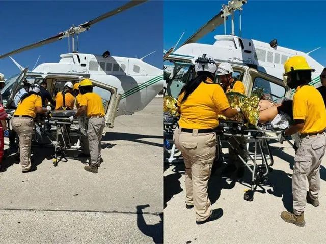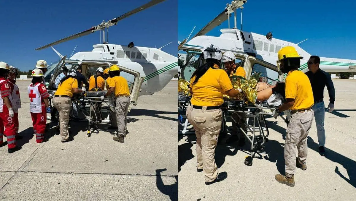 El hombre, quien estaba operando en las brigadas de extinción de incendios en la zona, fue evacuado en helicóptero y aterrizó en el Centro de Convenciones de Mazatlán a las 14:30 horas de este sábado aproximadamente.