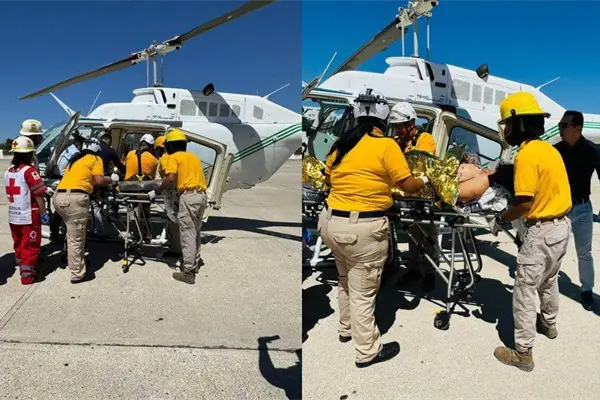Desde las 14:30 horas, por vía aérea, elementos de Protección Civil de Sinaloa y Cruz Roja trasladaron al joven al hospital.