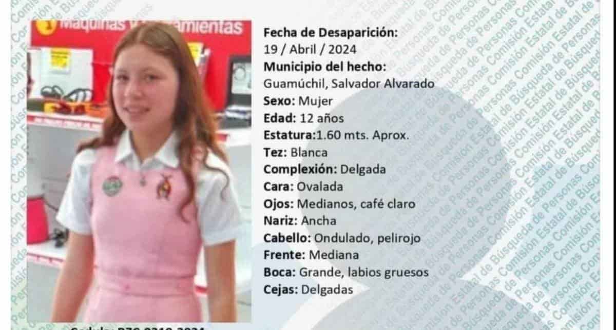 La familia de Angela Sofia Acosta Urías, una adolescente de 12 años de edad, está en angustia luego de su desaparición el pasado viernes 19 de abril en la colonia Morelos de la ciudad de Guamúchil.
