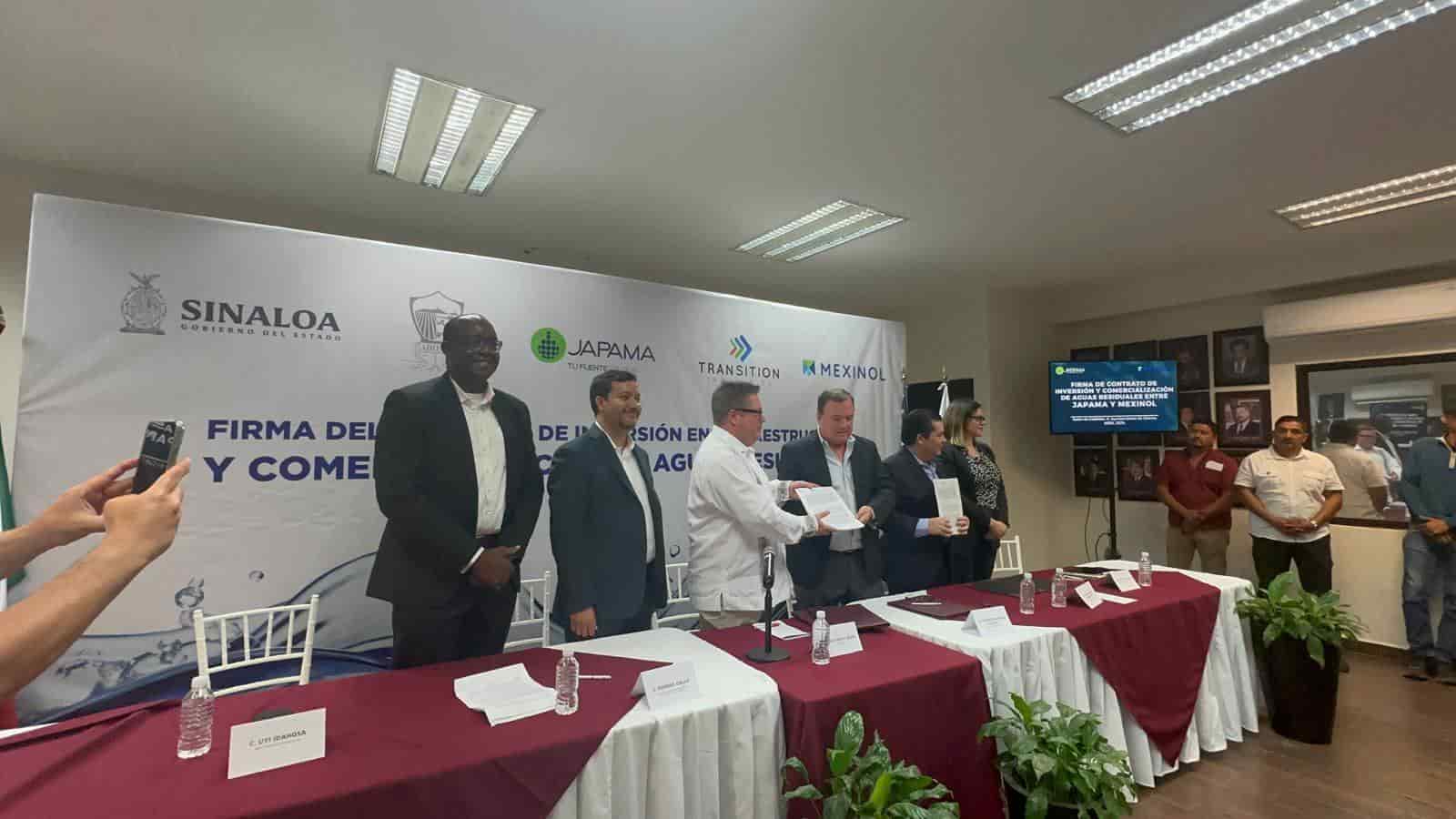 La empresa Transition Industries LLC (Mexinol) firmó un convenio con la Junta de Agua Potable y Alcantarillado de Ahome (JAPAMA) para poder usar en la producción de metanol las aguas negras o residuales del drenaje público que son tratadas en las lagunas de oxidación.