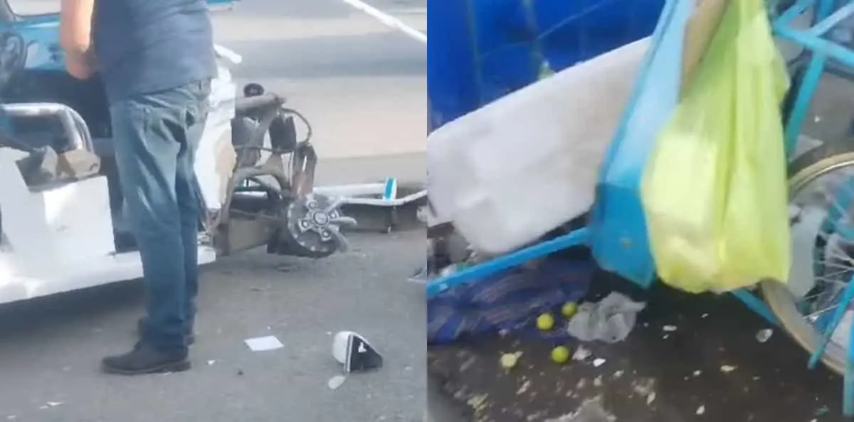 Tras un aparente choque previo contra dos vehículos a la altura de conocido supermercado de la zona y emprender la huida, el conductor de una camioneta Windstar sin placas, chocó contra una pulmonía y está a su vez, colisionó contra un triciclo de ceviches.