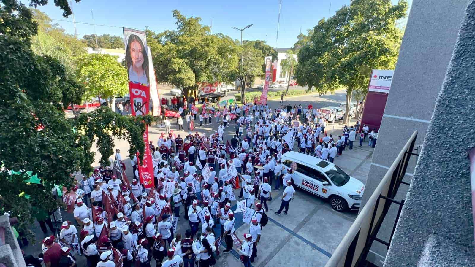 Al ritmo de banda sinaloense, tambores y bocinas, los simpatizantes de los candidatos se concentraron afuera de las instalaciones del Instituto Nacional Electoral en Culiacán.