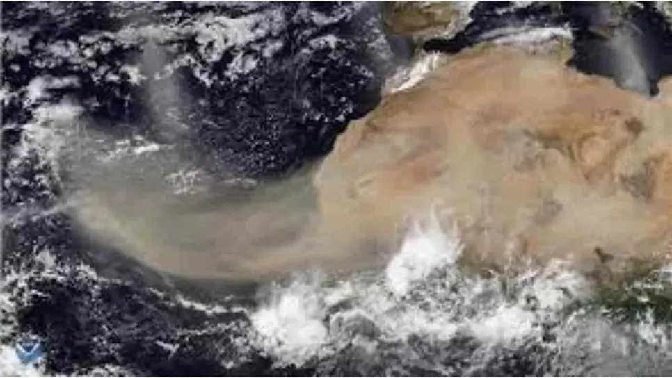 Este polvo, junto con el aire cálido, se desplaza por el Océano Atlántico hasta alcanzar la Península de Yucatán y la zona oriental de México, para luego dirigirse hacia el sureste de Estados Unidos.