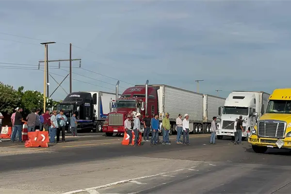 Enojados, traileros bloquean por completo la caseta Cuatro Caminos, Guasave