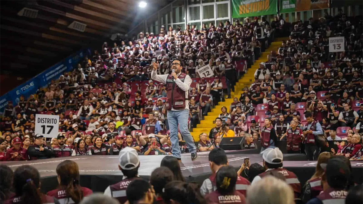 El candidato a la Alcaldía de Culiacán por Morena se reunió con la estructura del partido en el Polideportivo Juan S. Millán.