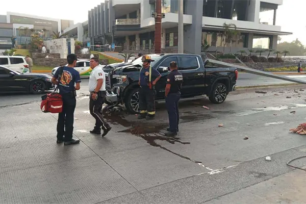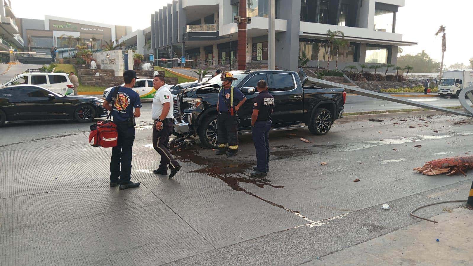 Una camioneta GMC de doble cabina en color negro, la mañana de este sábado se impactó con una luminaria pública en la avenida Camarón Sábado, frente al Hotel El Cid en Mazatlán.