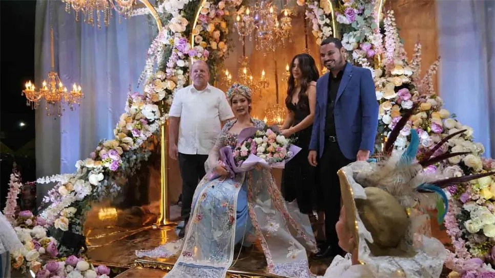 Portando un vestido azul adornado con flores, confeccionado por la talentosa Azucena Osako, irradiaba felicidad mientras era coronada entre aplausos por el alcalde local, Jesús Eloy Manjarrez y Alejandro Higuera Osuna, Subsecretario de la Industria de Reuniones de la Secretaría de Turismo en Sinaloa.