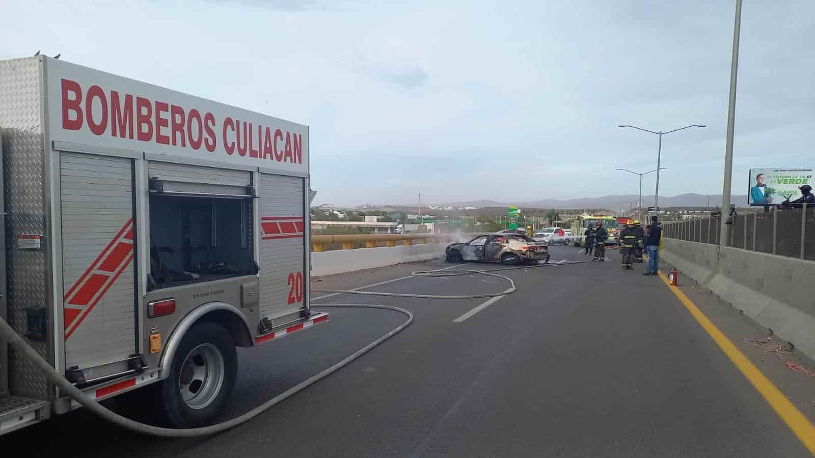 Choque deja dos hombres lesionados y un carro quemado al sur de Culiacán