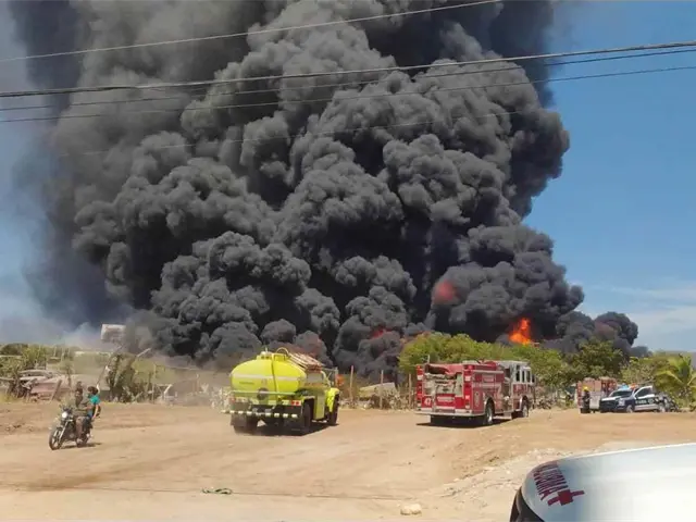 Precisó que el megaincendio causó pérdidas materiales en los yonkes de la zona sur de Culiacán y una persona lesionada que es empleada de la empresa de combustible en donde se generó el siniestro.