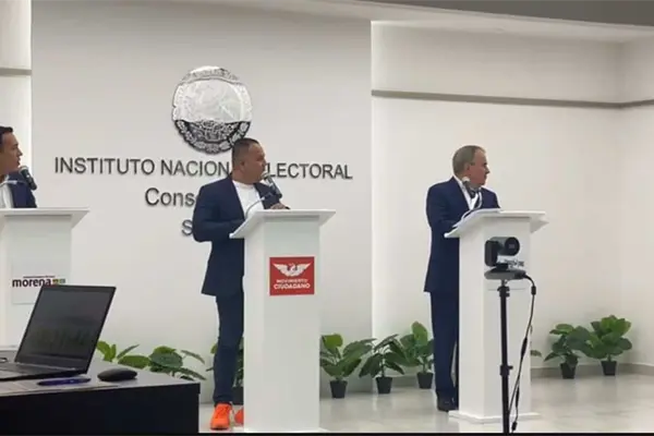 La falla sucedió cuando se comenzó a escuchar por toda la sala de la junta local del INE la transmisión en vivo del debate al mismo tiempo que el candidato hablaba, lo que no permitió seguir con su discurso, que debió durar 4 minutos sin interrupciones.