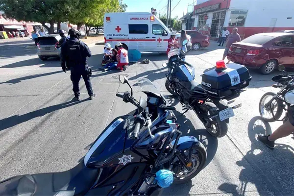 Tres lesionados tras choque entre moto y auto en Mazatlán; entre ellos un bebé