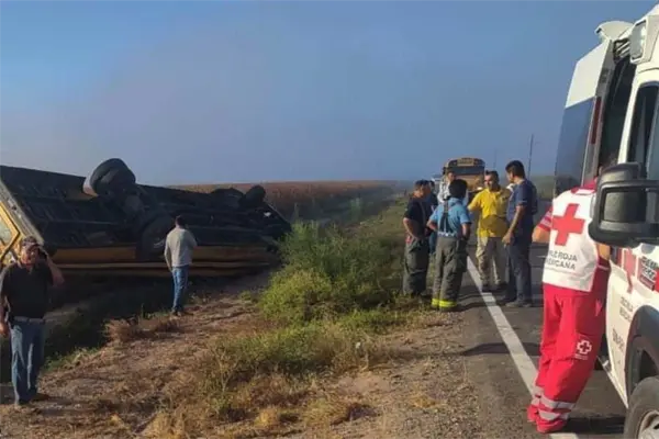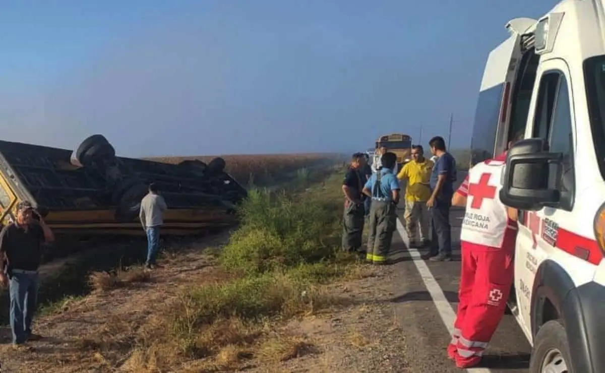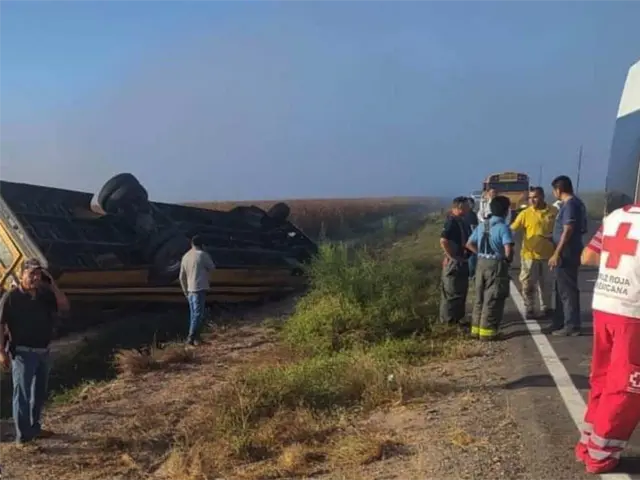 Un autobús que trasladaba a 41 jornaleros sufrió un accidente en la carretera que conduce de La Pipima a Navolato, esta mañana de martes, 14 de mayo.