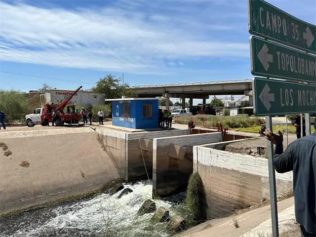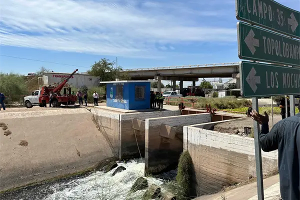 El accidente se registró aproximadamente a las 14:00 horas de este jueves, en el Canal Lateral 18, que corre paralelo al libramiento Oriente carretera Campo 35, a la altura de la compuerta ubicada bajo el puente desnivel de la carretera internacional México 15, en las inmediaciones de Los Almacenes.