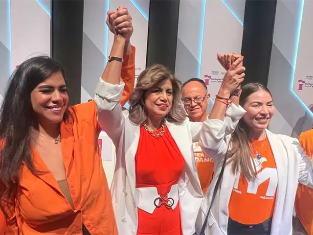 Al finalizar, la candidata fue recibida por su porra y militantes de Movimiento Ciudadano fuera de las instalaciones de la Universidad Autónoma de Occidente (UAdeO) para celebrar su victoria.