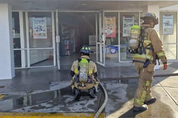 A los números de emergencia, 911, llegó primero el reporte de un incendio en una farmacia de la Zona Dorada, donde habría iniciado el fuego de forma inesperada en una parte del local, hasta donde se trasladaron Bomberos Mazatlán para atender la situación.