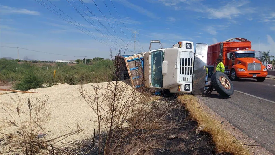 En ese momento el torton circulaba rumbo al puerto de Topolobampo cargado con maíz, pero al intentar reducir la velocidad tomó el acotamiento y le ganó el peso, lo que a su vez provocó que volcara hacia un costado.