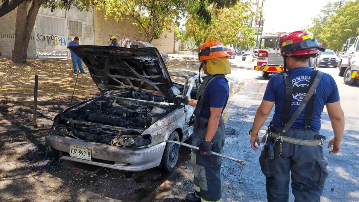 Completamente en llamas terminó un Nissan Tsuru que era conducido por una mujer, acompañada de su hijo de 10 años, en la cercanía del distribuidor vial del sector Humaya en Culiacán. Las autoridades de la Policía Municipal confirmaron que no hubo personas lesionadas , solo la conductora con crisis nerviosa.