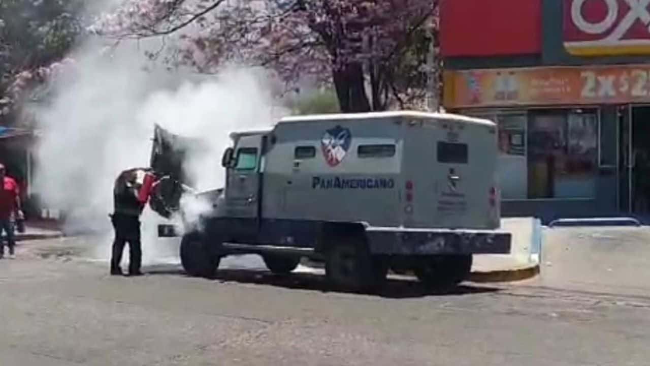 Nunca se imaginaron unos empleados de traslado de valores, que al realizar su recorrido en el sector de Loma Linda de Culiacán, su camión resultara con un conato de incendio en la zona del motor.