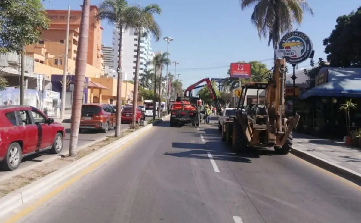 Por obras hay cierre parcial de la avenida Camarón Sábalo en Mazatlán
