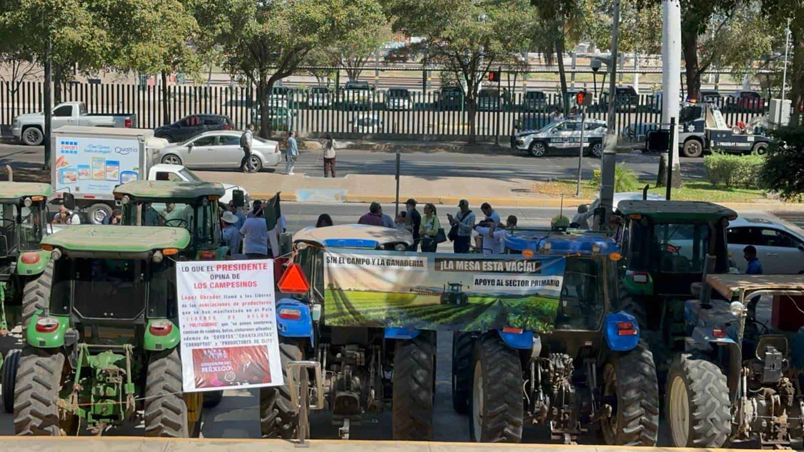 Productores «plantan» tractores en Palacio de Gobierno en Culiacán; piden a AMLO los reciba
