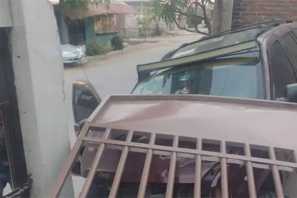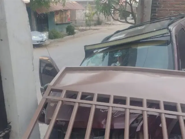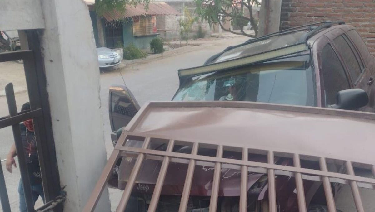 Un conductor de una camioneta Jeep Cherokee terminó contra una cochera de un domicilio de la colonia El Mirador, cuando se accidentó durante la mañana de este martes.