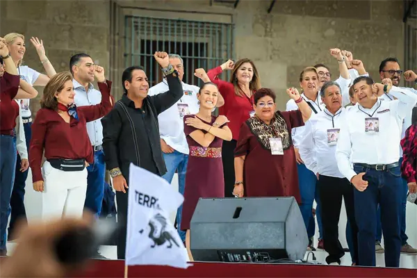 Durante el cierre de campaña de Claudia Sheinbaum, los candidatos Imelda Castro y Enrique Inzunza subieron al templete principal junto a Adán Augusto, Ricardo Monreal, Gerardo Noroña, Manuel Velasco y Marcelo Ebrard.
