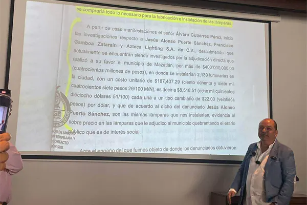 Jesús Alonso Puerto Sánchez, director y propietario de Azteca Lighting, afirmó que «jamás volverá a venderle algo al gobierno» luego de los problemas que le ha traído el contrato por más de 400 millones de pesos por la compra de 2 mil 139 luminarias LED, para instalar en un proyecto integral para Mazatlán.