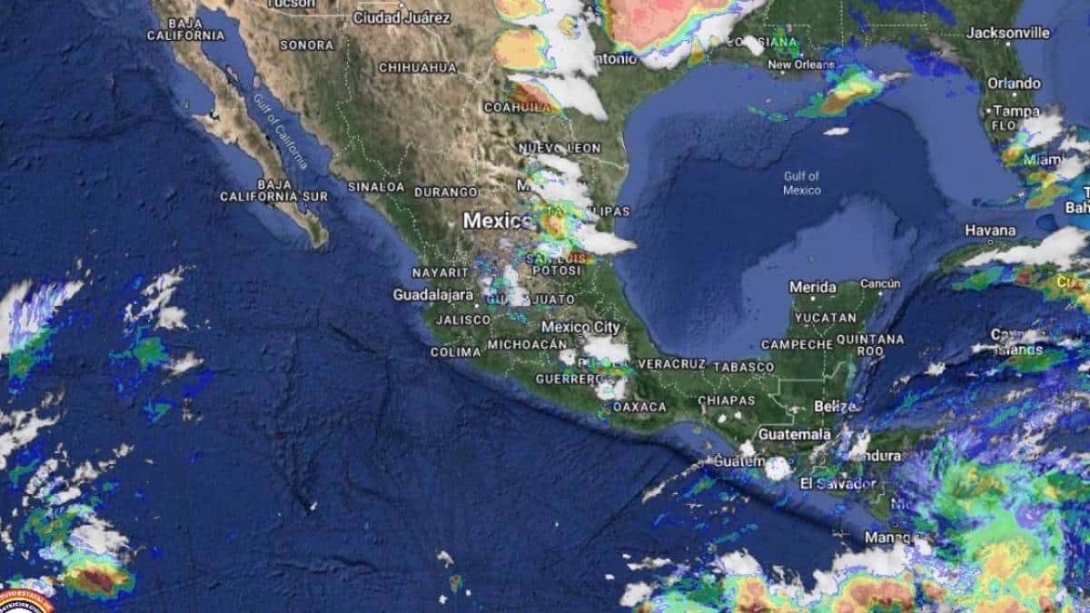 A su vez, canales de baja presión en el interior del territorio mexicano y la entrada de aire cálido y húmedo de ambos océanos, producirán lluvias con chubascos acompañados de descargas eléctricas y posible caída de granizo en el norte, occidente, centro y sur del país, además de vientos fuertes con posible formación de torbellinos en Zacatecas, Aguascalientes y Jalisco.