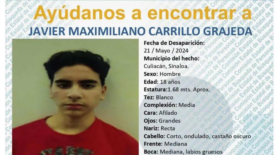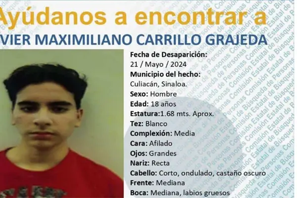 Las autoridades trabajan para dar con el paradero del joven Javier Maximiliano, estudiante de la preparatoria Central de la UAS quien fue privado de la libertad en la zona norte de Culiacán.