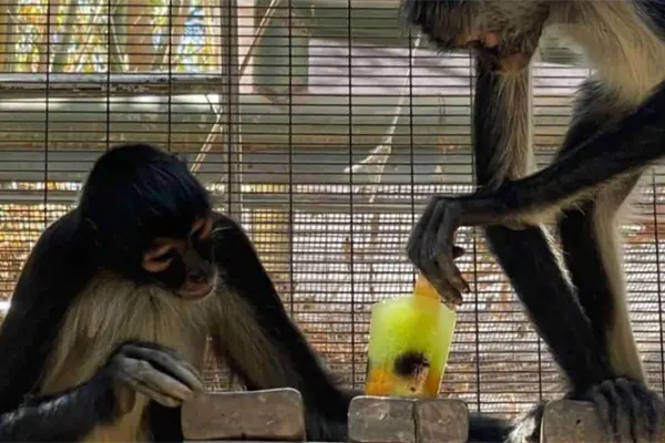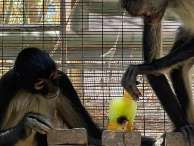 Unas de las especies que más disfrutan de este refrescante aperitivo son los Monos Araña, a quienes les prepararon paletas de hielo con trozos de plátano, uva, frambuesa y naranja.