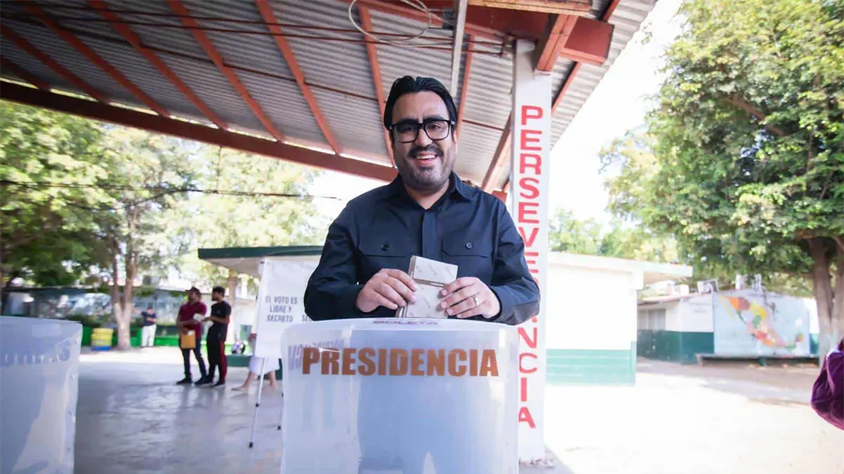 El candidato a la alcaldía de Culiacán por Morena emitió su voto en la primaria José Vasconcelos, ubicada en la Colonia Villa Satélite, de Culiacán, Sinaloa, acompañado de su familia y su esposa Irma Nidya.